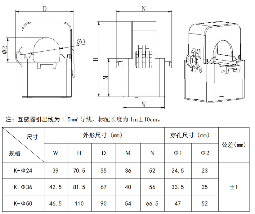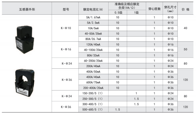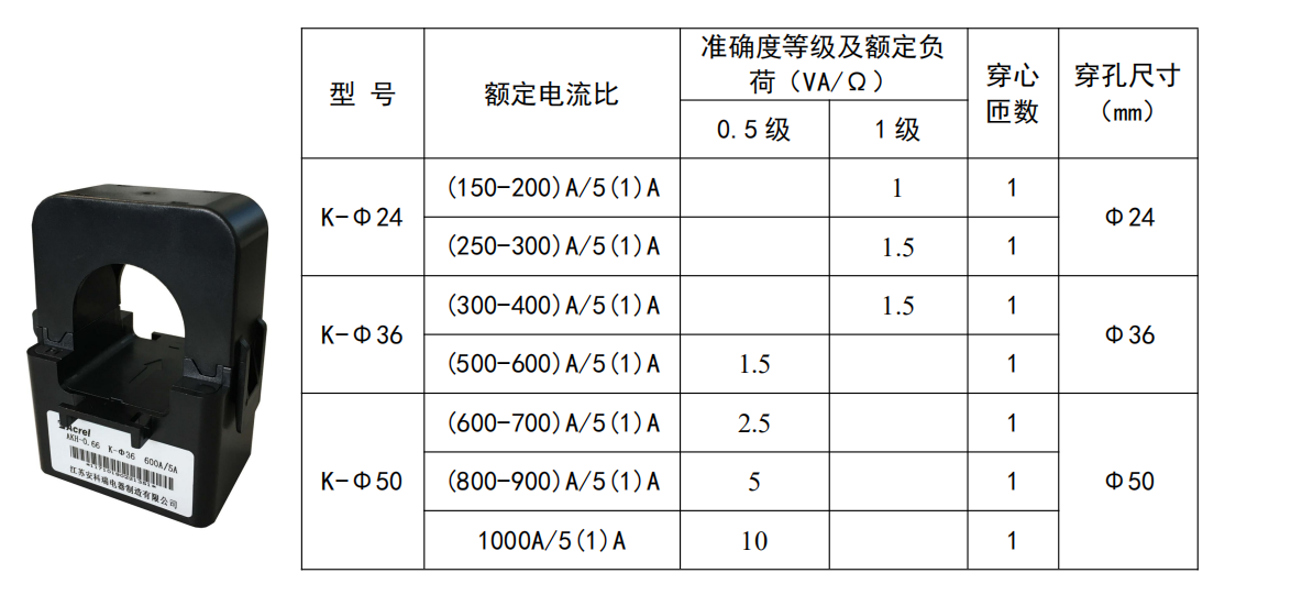 圓孔型穿線纜開口式互感器AKH-0.66/K-Φ24:穿線纜直接24mm;精度1級;穿心匝數1匝;電流規格150A~300A