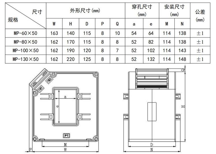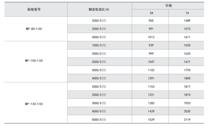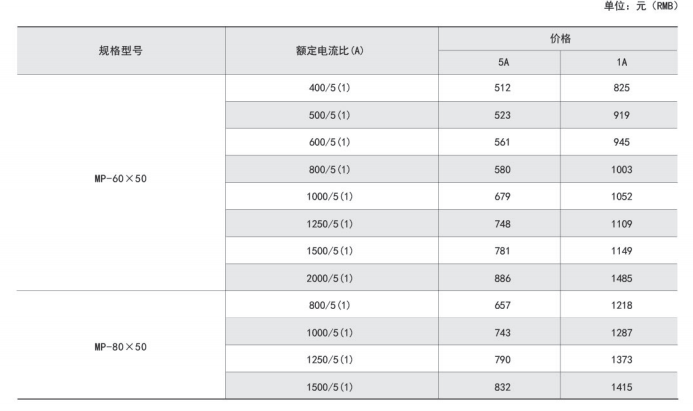 測量保護一體式電流互感器 AKH-0.66/MP-80*50 800/5:額定電流800A;穿排孔徑82*52mm;母排規格:80*10/1-3根