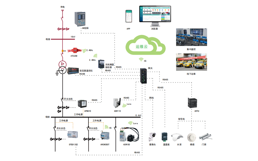 可配置遙信變位報警(水浸、煙霧、門磁、開關跳閘等)、遙測越限報警(過壓、欠壓、過流、線纜溫度過高、繞組溫度過高等)、運行報警(儀表離線、網(wǎng)關離線等),并將接收到的報警通過短信、網(wǎng)頁推送,報警上下限可根據(jù)現(xiàn)場情況靈活配置;