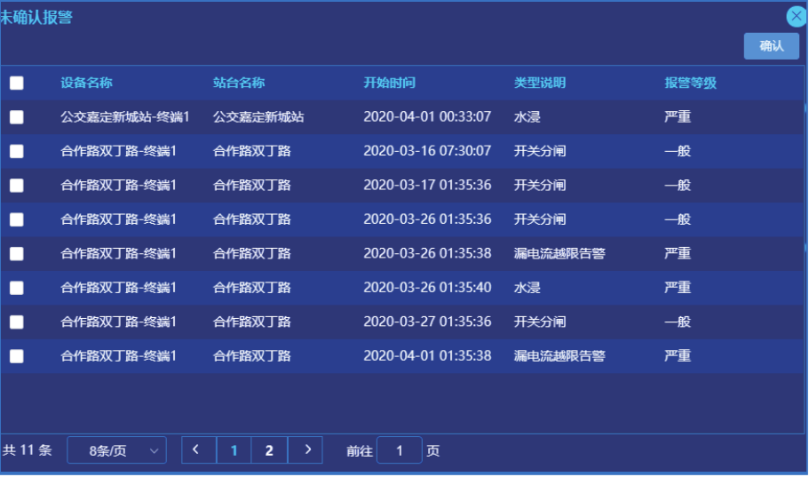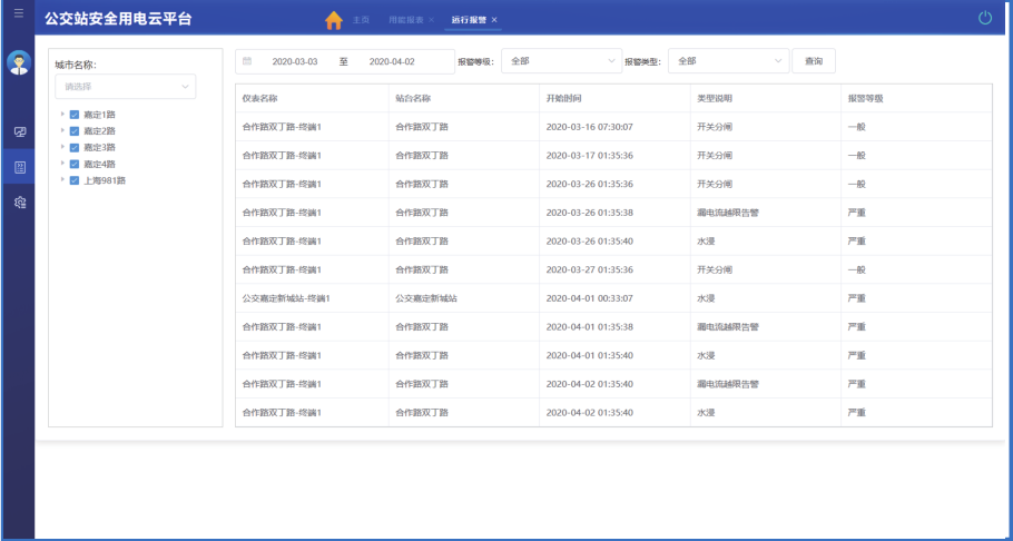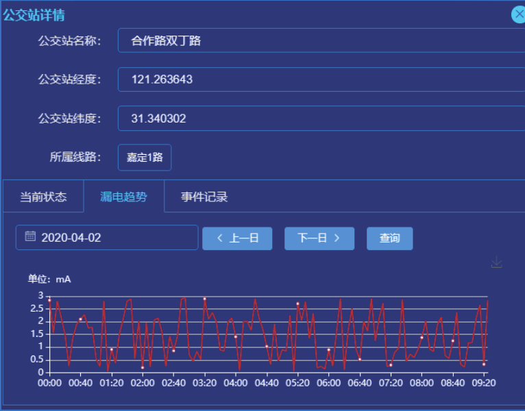 用戶可查詢公交站臺的歷史漏電流數據、報警數據、用電數據;