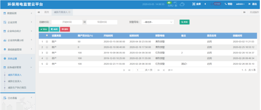 2.6.1減排方案錄入:根據減排計劃錄入減排方案,支持應急預案的啟動。