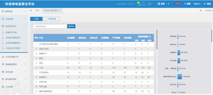 2.4.2點位運行情況分析:按行業或區域統計分析企業、監測點、產污設施、治污設施等數量及運行狀態。