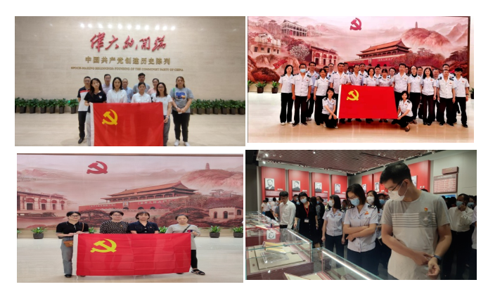 全體黨員同志一同合影留念,通過紀念館內的書簽留言,向適逢百歲生日的中國共產黨送上深情寄語。