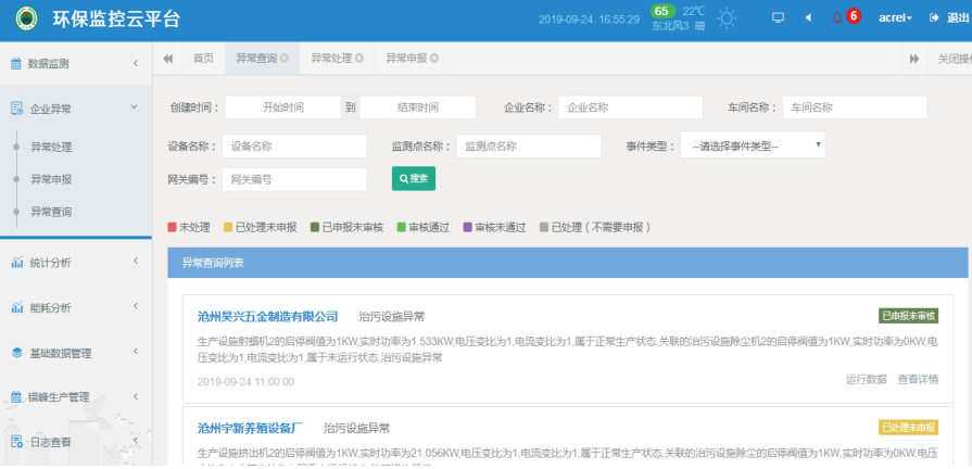 通過關(guān)聯(lián)分析、超限分析、啟停時間分析,及時發(fā)現(xiàn)環(huán)保治理設(shè)備未開啟、異常關(guān)閉及減速、空轉(zhuǎn)、降頻等異常情況,同時通過數(shù)據(jù)分析還可以實時監(jiān)控限產(chǎn)和停產(chǎn)整治企業(yè)運行狀態(tài)