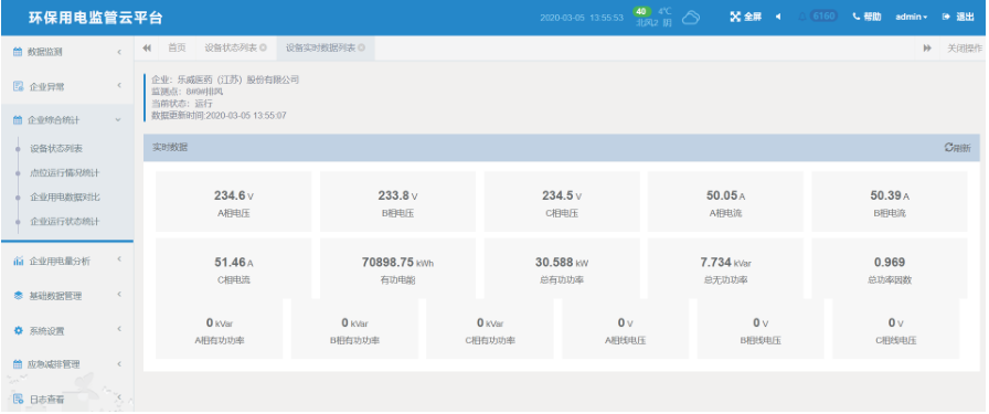 設(shè)備狀態(tài)分析:統(tǒng)計分企業(yè)某個時間段內(nèi)的產(chǎn)污設(shè)備運行、停機(jī),監(jiān)測設(shè)備失聯(lián),可以查看實時上報的數(shù)值。
