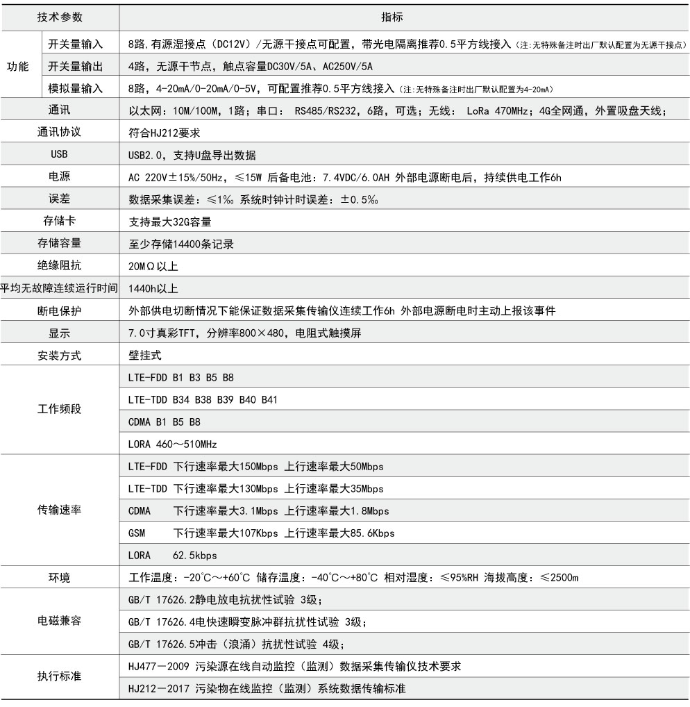 觸摸屏顯示,8 路開關(guān)量輸入,4 路開關(guān)量輸出,8 路模擬量輸入,SD 卡 數(shù)據(jù)存儲(chǔ),USB 數(shù)據(jù)讀取,以太網(wǎng)通訊,Lora 通訊,485/232 通訊