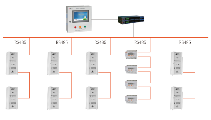IT配電監測系統以計算機(或觸摸屏)、通訊設備、測控單元為基本工具,采用現場總線進行組網,為各類場所IT配電系統的實時數據采集及遠程管理與控制提供了基礎平臺。其層次結構如下所示: