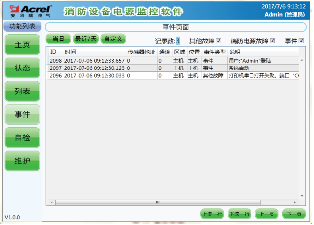 用戶于該界面內可查詢任意時段內相應報警或動作類型下的記錄,各級操作權限均可查看該界面的信息。