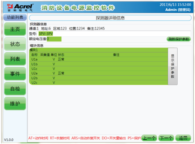 內置的內部設定參數、測量參數狀態參數,并可于該界面對監控裝置進行遠程解除報警或分合閘控制。