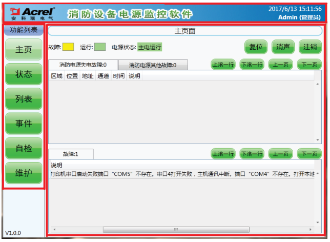 該檢測功能為“管理員”和“操作員”方可進行的操作功能,主要用于設備自檢和對監控系統柜體面板指示燈的手動檢測。