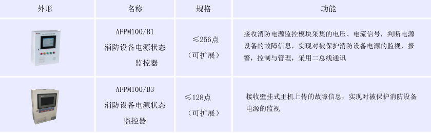 AFPM系列消防設備電源監控系統能夠對消防設備的電源進行實時監控,通過檢測消防設備電源的電壓、電流、開關狀態等有關設備電源信息,從而判斷電源設備是否有斷路、短路、過壓、欠壓、錯相以及過流(過載)等故障信息并實時報警、記錄的監控系統。此系統具有可靠性、實時性并具有數字化、智能化、網絡化、自動化和連續監控的特性。實時反映出被監控設備電源的狀況,并集中顯示,從而可以有效避免在火災發生時,消防設備由于電源故障而無法正常工作的危急情況,保障消防聯動系統的可靠性。