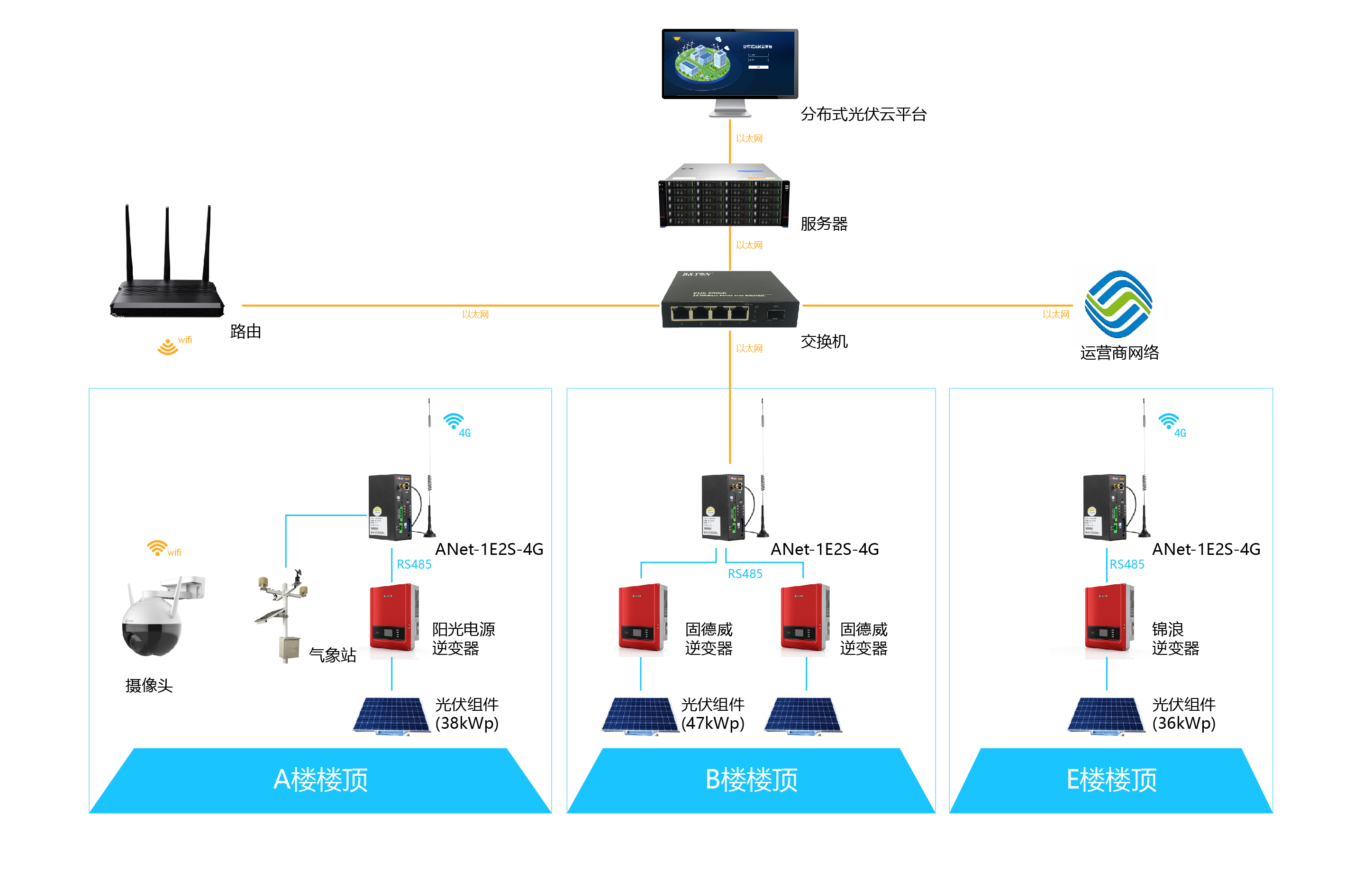 攝像頭實(shí)時監(jiān)測現(xiàn)場環(huán)境,并且接入輻照度、溫濕度、風(fēng)速等環(huán)境參數(shù)。