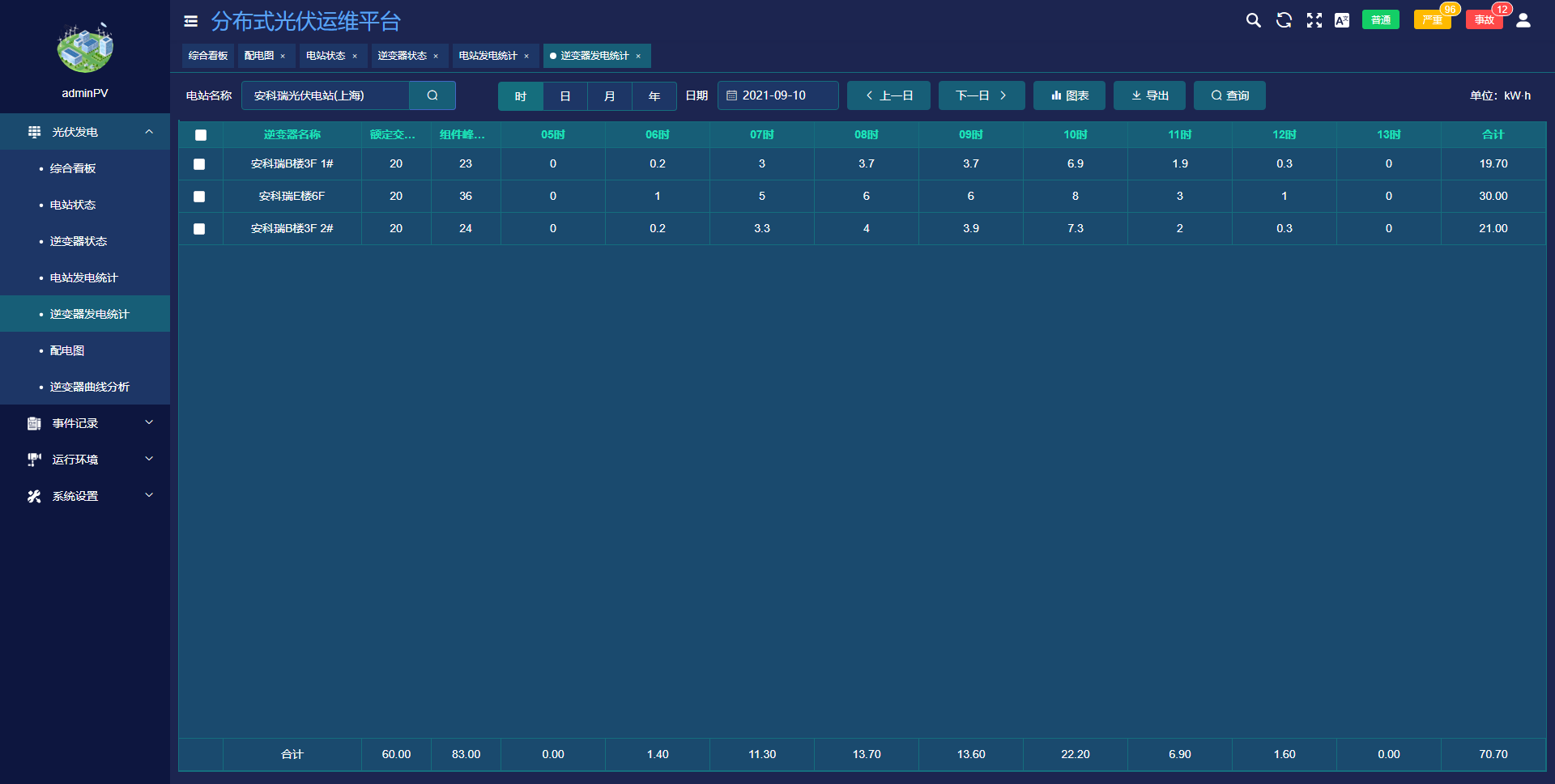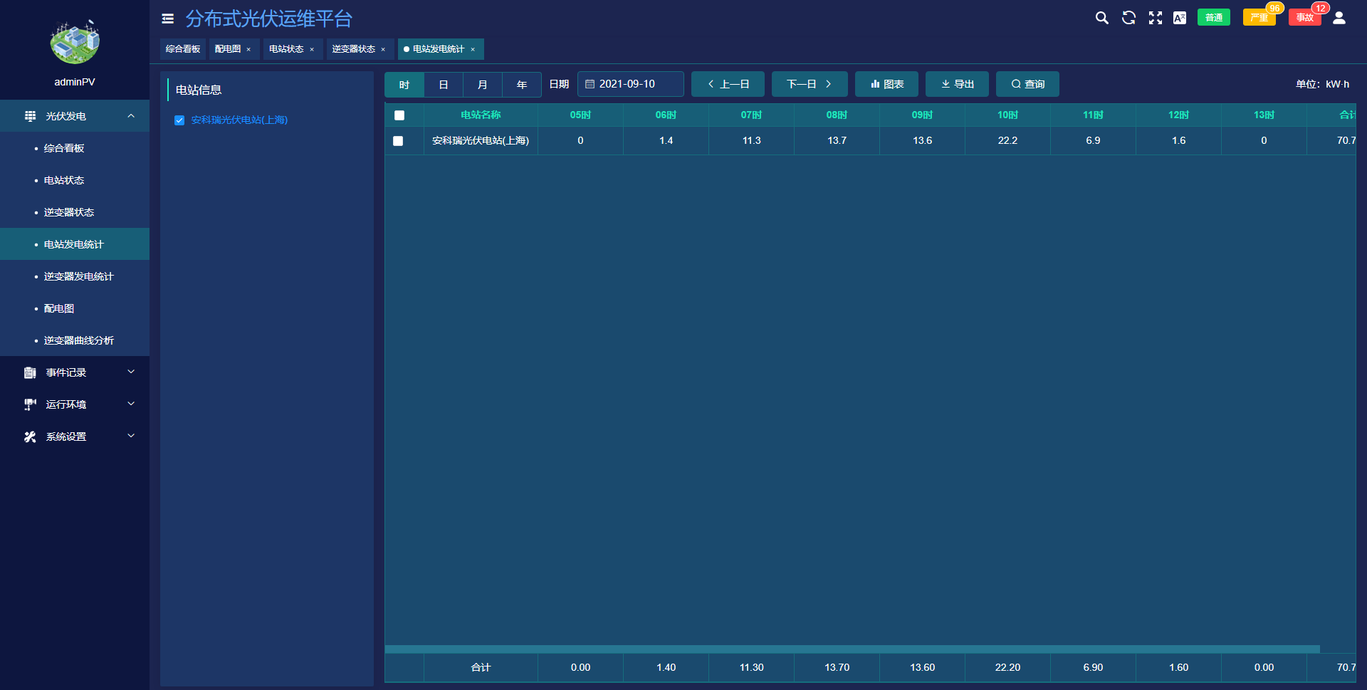 展示所選電站的時、日、月、年發(fā)電量統(tǒng)計(jì)報(bào)表。
