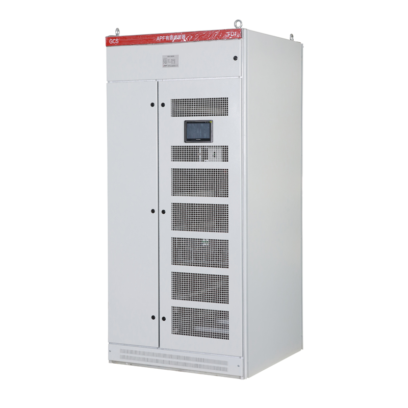 整柜式有源濾波器ANAPF200-380:通過電流互感器采集系統諧波電流,經控制器快速計算并提取各次諧波電流的含量,產生諧波電流指令,通過功率執行器件產生與諧波電流幅值相等方向相反的補償電流,并注入電力系統中,從而抵消非線性負載所產生的諧波電流。