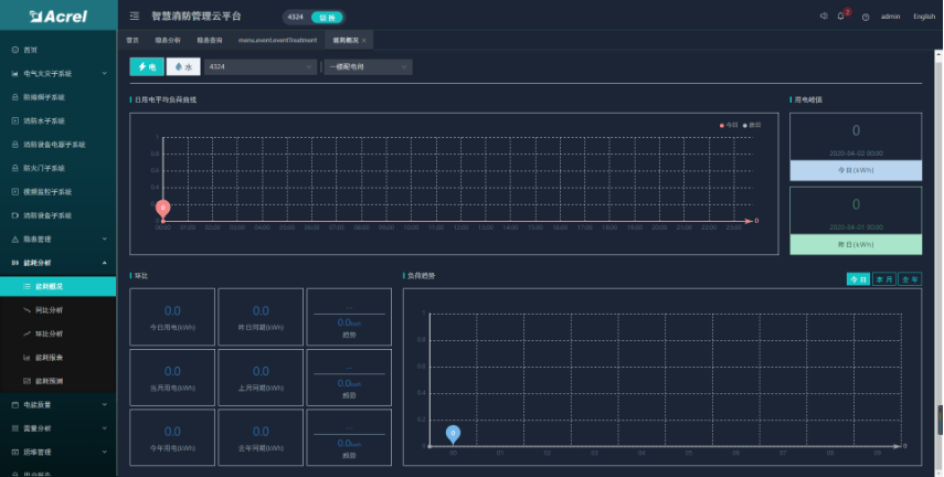 能耗分析功能包括了能耗概況、能耗同比、能耗環比、能耗報表和能耗預測等五個模塊??梢圆榭吹卿浻脩粝碌乃许椖?的能耗統計、同環比和報表,且按日、周、月等維度進行能耗預測分析。